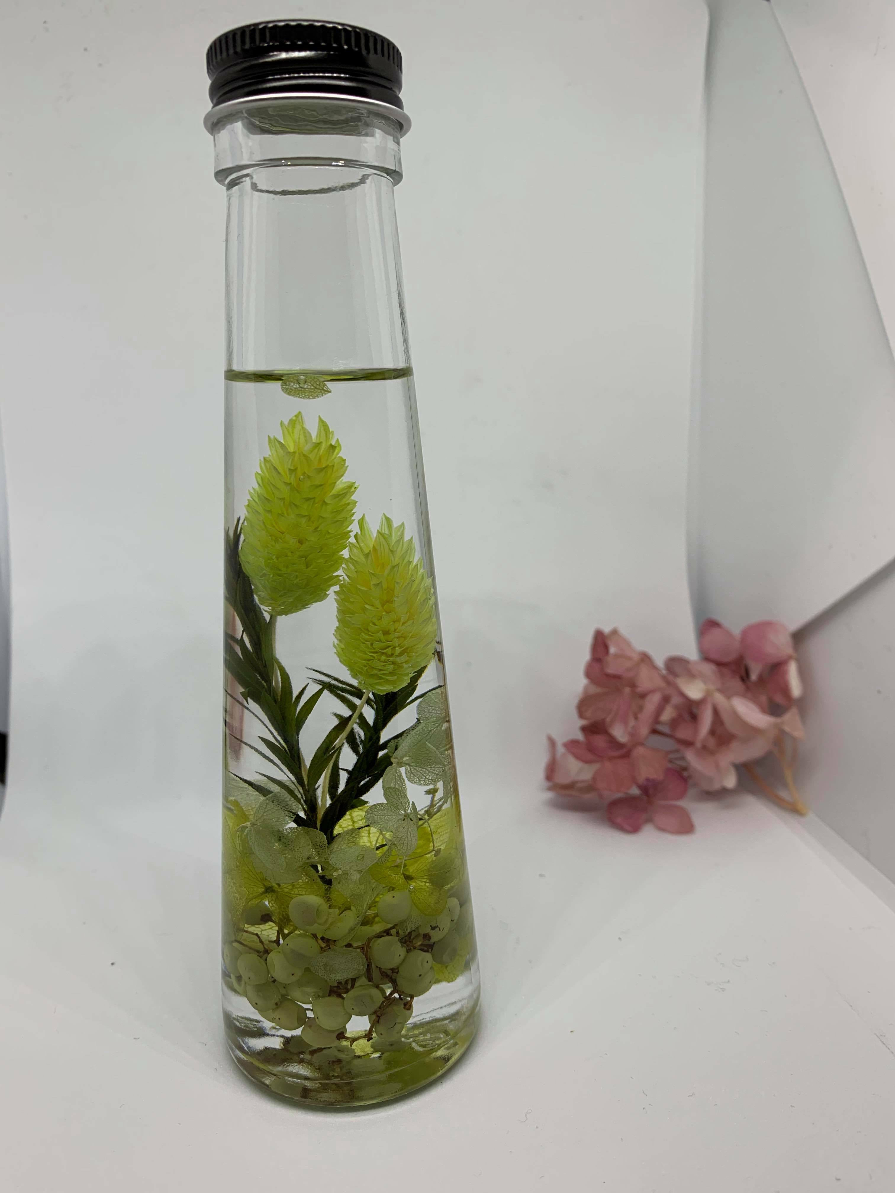 ディヒューザーハーバリウム:ハーバリウムにお好みのアロマオイルを入れることでハーバリウムの美とアロマの香りで2つの癒やし効果が得られるステキなアイテム。